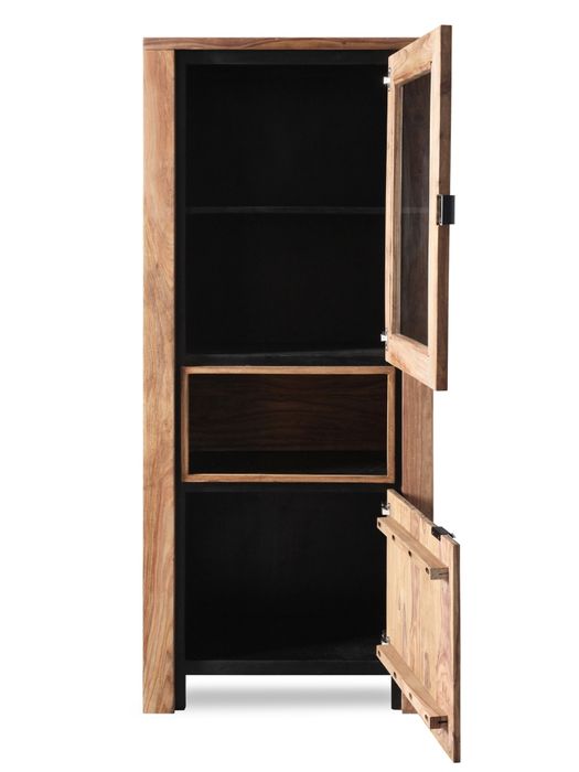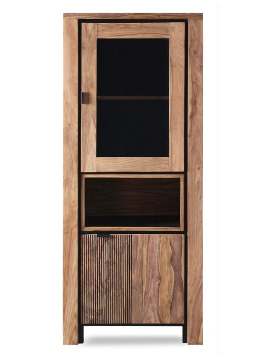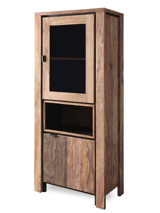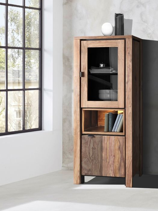 Die Vitrine aus der BANDUNG-Kollektion vereint hochwertige Handwerkskunst mit modernem Wohnkomfort. Gefertigt aus massivem Akazien- und Shishamholz besticht sie durch ihre markante Maserung und warme Farbgebung. Das integrierte Licht setzt Ihre Lieblingsstücke gekonnt in Szene, während die Kombination aus Glas- und Holztüren sowohl offene als auch geschlossene Stauraummöglichkeiten bietet. Ein stilvolles Statement für Liebhaber natürlicher Materialien und klarer Linien.