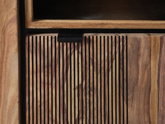 BANDUNG – geradliniges Design und kontrastreiche Rahmenelemente überlassen dem lebendigen, ausdrucksstarken Akazienholz die große Bühne. Die warme LED-Beleuchtung setzt Ihr neues Lieblingsmöbel aus massivem Shishamholz und Akazie gekonnt in Szene.