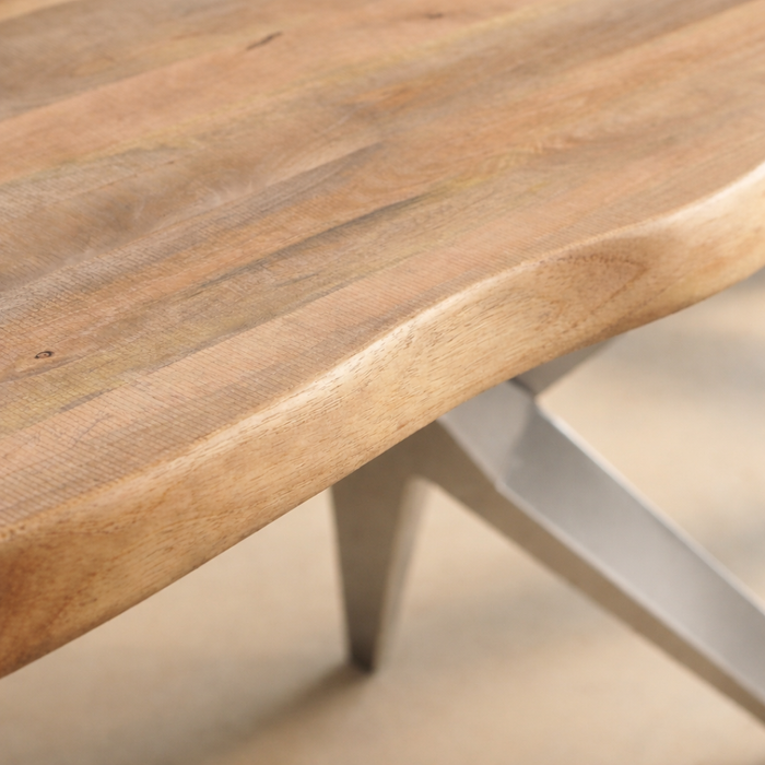 | Modell | Esstisch "live edge" Mango latte 180x90 cm, Fly silber matt |