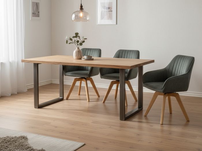 Der Stuhl Gail vereint modernes Design mit gemütlicher Eleganz. Die weiche, samtige Polsterung in edlem dunkelgrün und die markante Rillensteppung machen ihn zum stilvollen Highlight in jedem Raum. Dank seiner 180-Grad-Drehfunktion mit praktischer Rückstellmechanik bietet Gail zusätzliche Bewegungsfreiheit und kehrt nach dem Aufstehen automatisch in die Ausgangsposition zurück – ideal für dynamisches Sitzen im Alltag. Die stabilen Holzbeine sorgen für sicheren Stand und setzen natürliche Akzente. Ob im Esszimmer, Home-Office oder als Eyecatcher im Wohnzimmer – Gail ist der perfekte Mix aus Komfort, Funktionalität und Design.